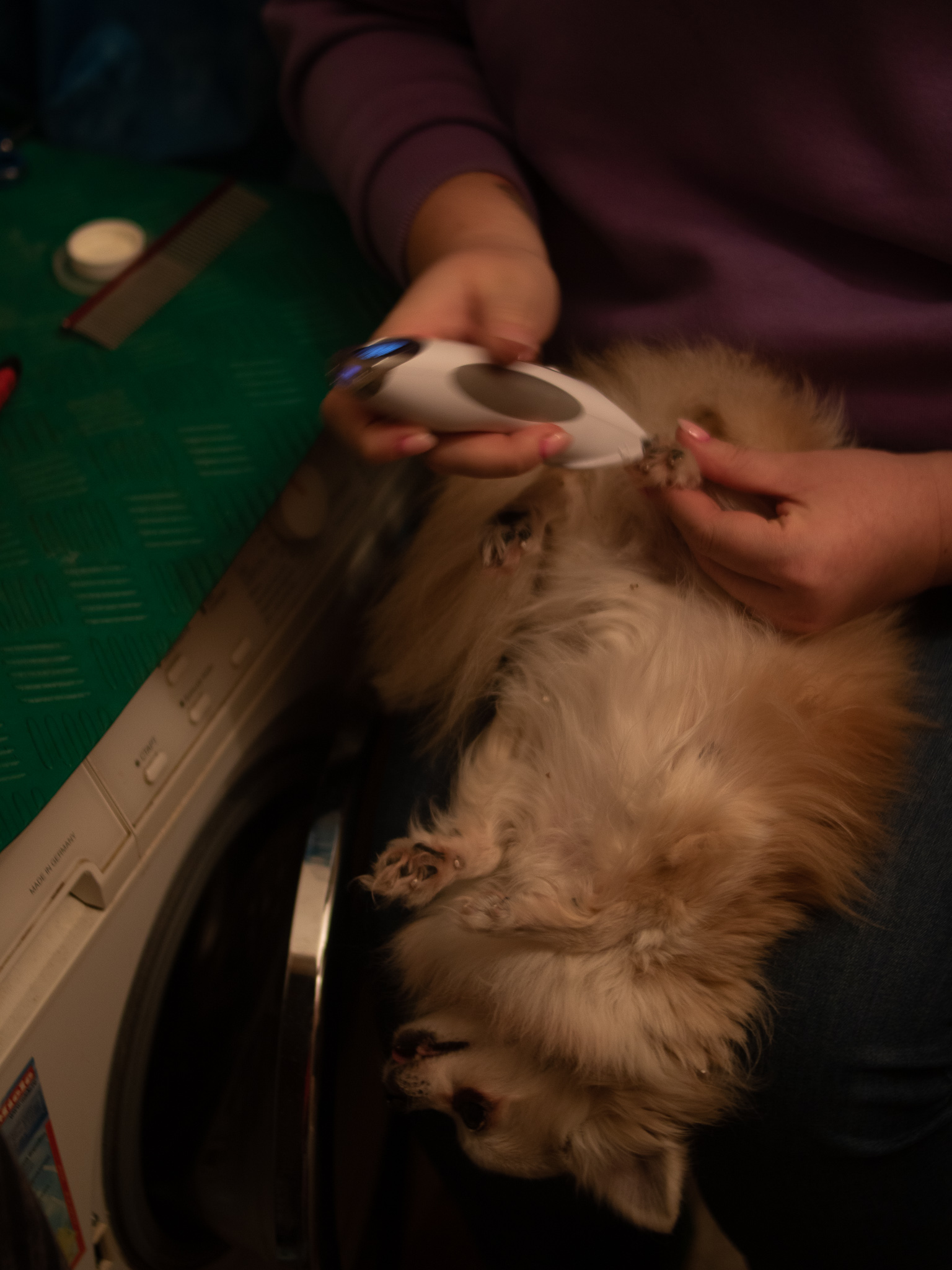 Букаша в лапах грумера.