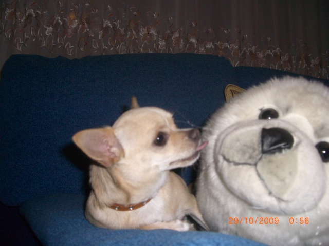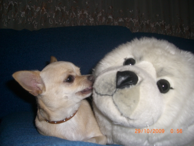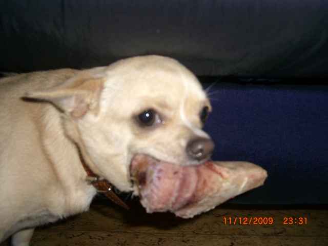 Шерри прятала косточку, закапывая в подушках дивана. Косточку стали отнимать, Шеррик показала зубки. Говорят часто чихуа бывают вредными, у нас добрая, бабушкам во дворе виляет хвостиком и дает погладить если знакомы.
