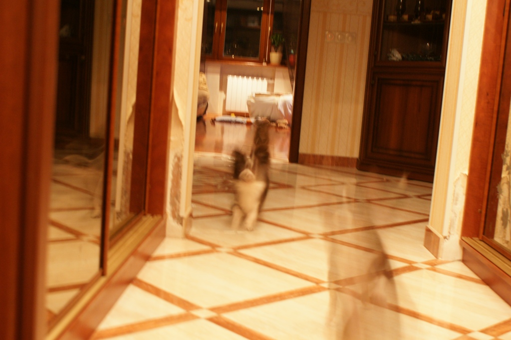 Девочки хочу разместить еще три фотки на которых ничего не видно кроме съденых обоев, но зато понятна скорость передвижения собак, которых не берет фотик даже в "спортивном режиме".