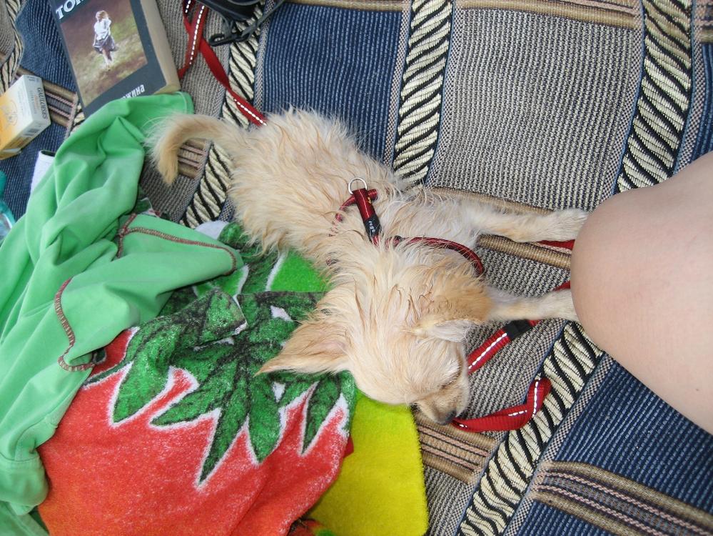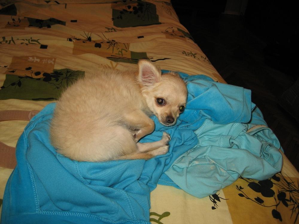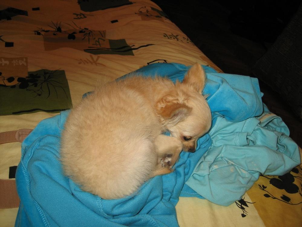 Купер у нас Наленький путешественник. Поэтому любимым местом стал карман рюкзака, с которым мы ездим на дачу. Ну и еще любимый мамин спортивный костюм, в котором она гуляет с Купаросом:boz: