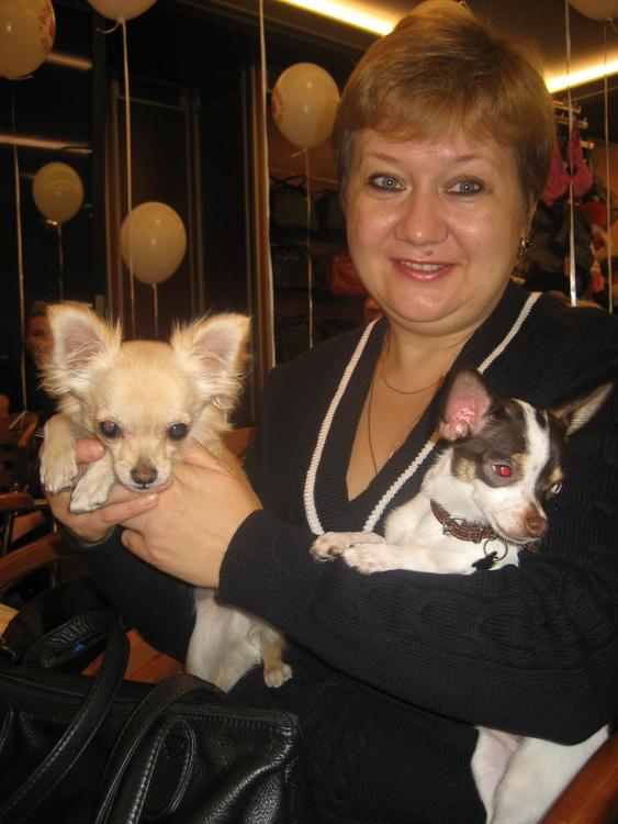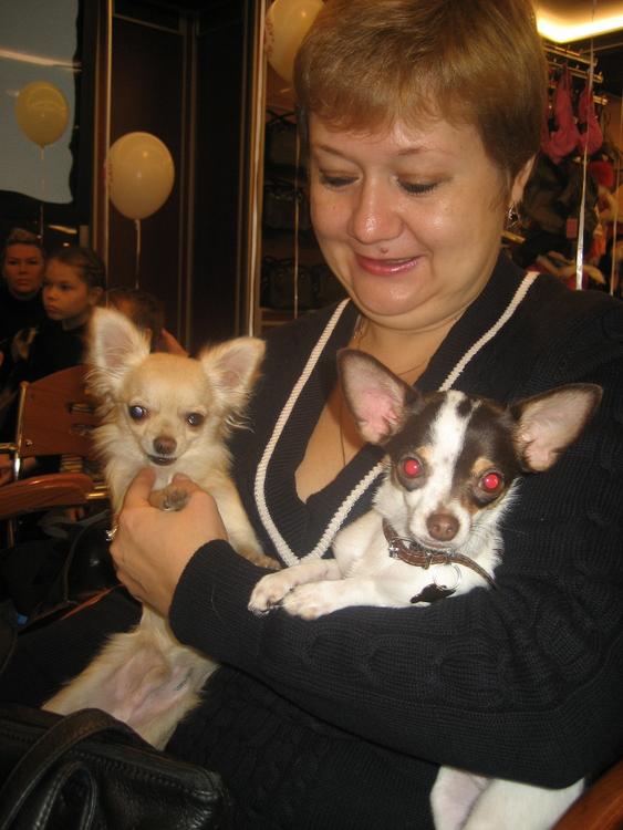 На шоу Чихи против Йорков Купер и Вжик на руках у моей мамы. Вообще Вжику у нее понравилось. Он и поспал и поиграл.