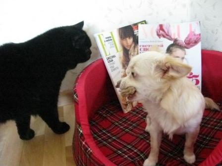 Как это здорово когда дружат между собой кошка и собачка! Это совершенно два разных зверя по пластике и повадкам удивительно нежно привязыфваются друг к другу. Особенно, когда кошка уже сильно взрослая и мудрая. Она уже не спешит надовать "по мордам" щенку, а терпеливо сносит проказы собачёнки. Здоровья и долгих лет счастливой жизни Вашим любимцам! Ну, и ждём от Вас новых фото и историй.