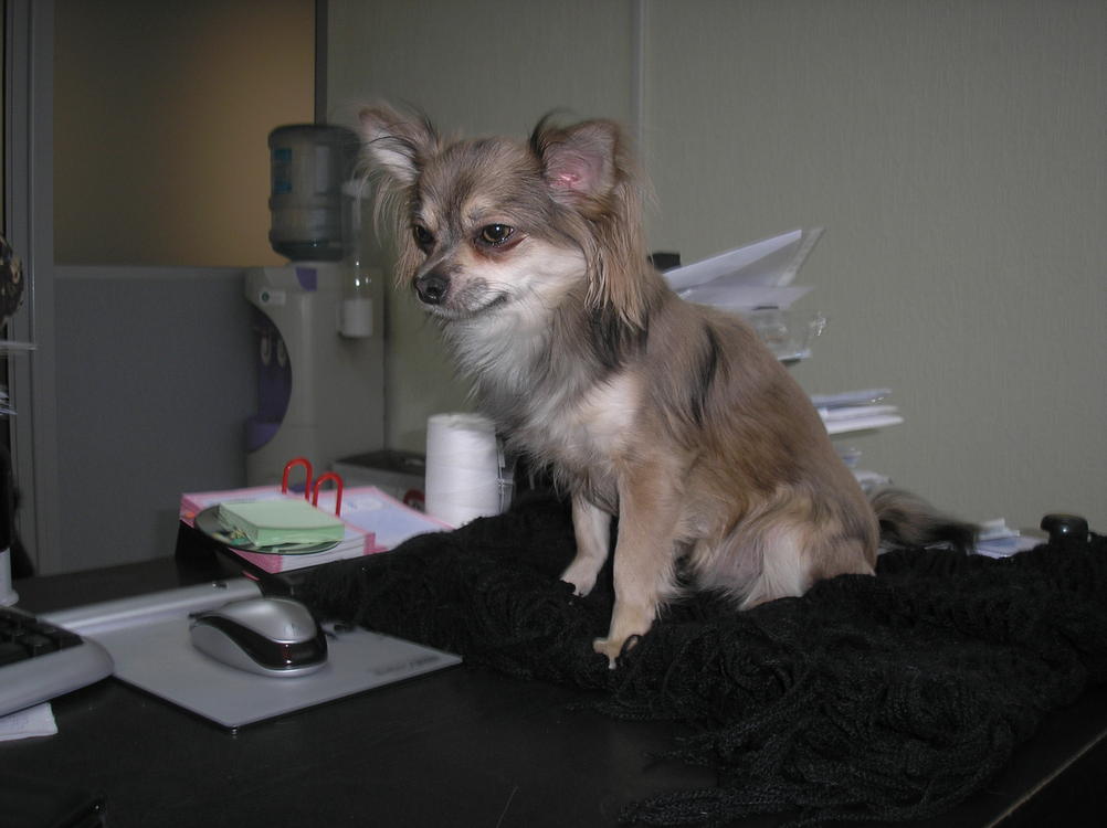 Лена,а Тайсон не гавкает на работе на тех кто в кабинет заходит? Просто Соня всегда гавкает и из за этого я её с собой брать не могу.