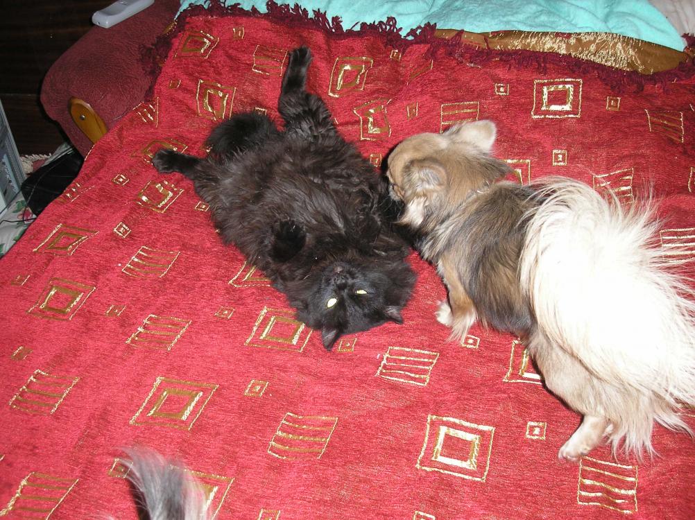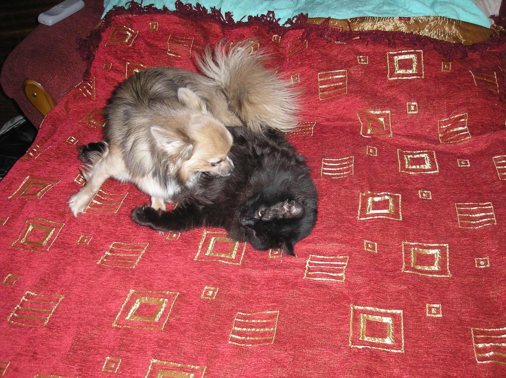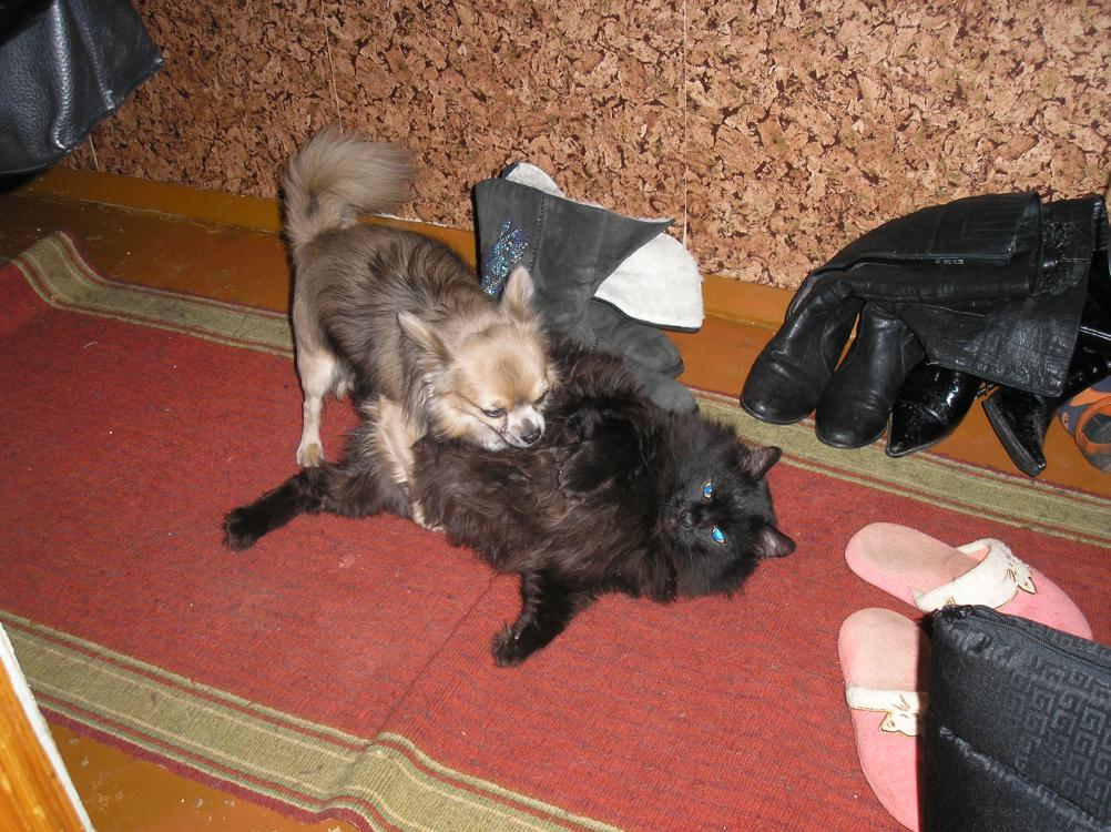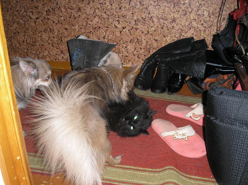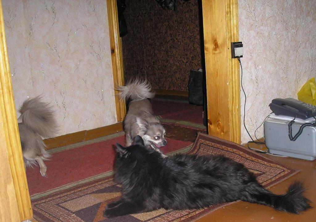 Хорошие фотки, котейка жиряшка, потискать бы, да и Тоська на третьей фотке тоже небось хочет, взгляд как будто размышляет, но знает, что мама не одобрит. Интересно буде посмотреть фотоотчет сегодняшней "вечеринки"...
