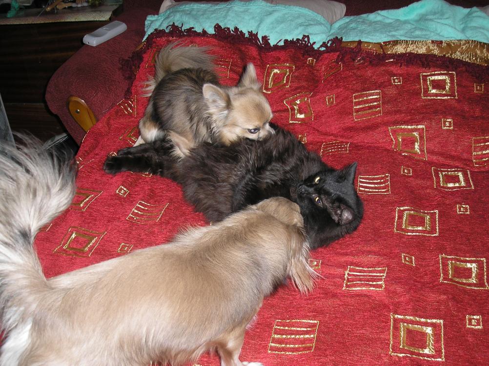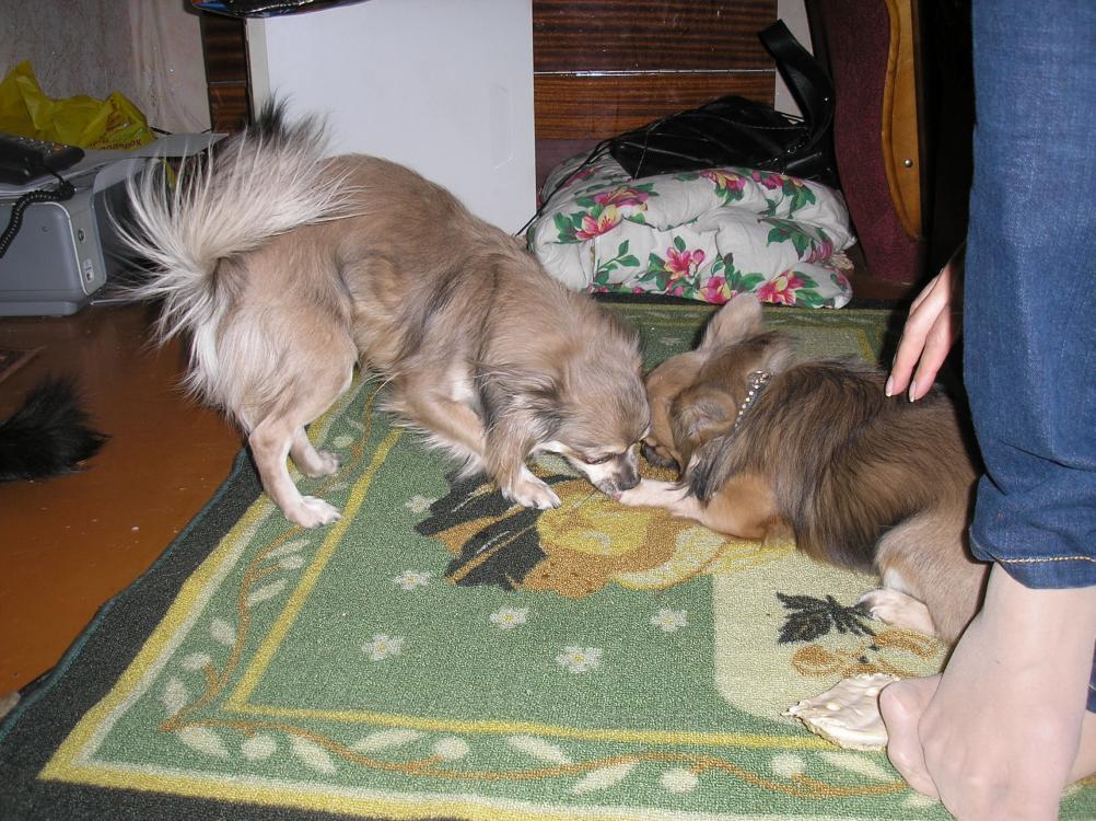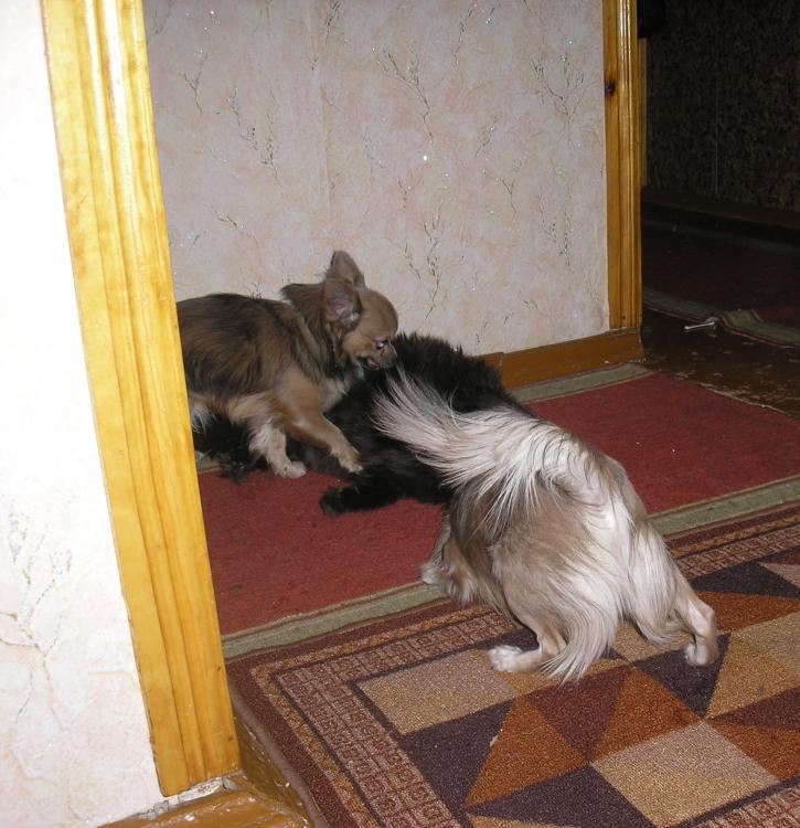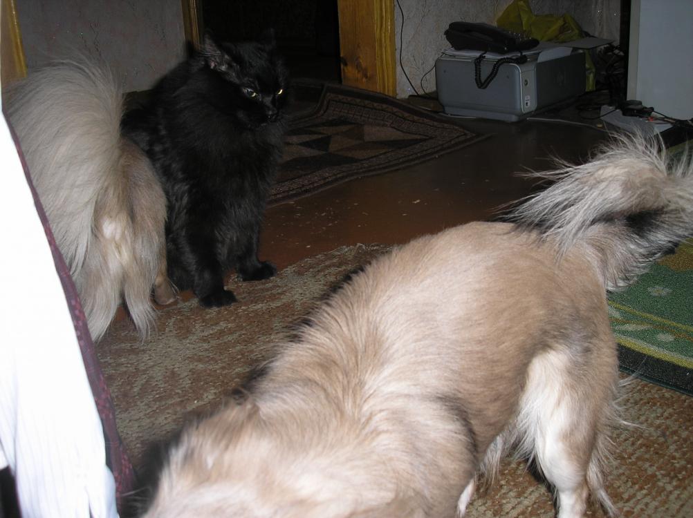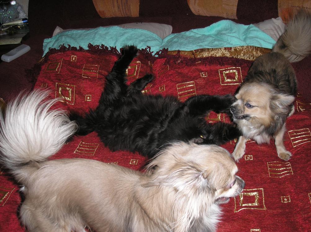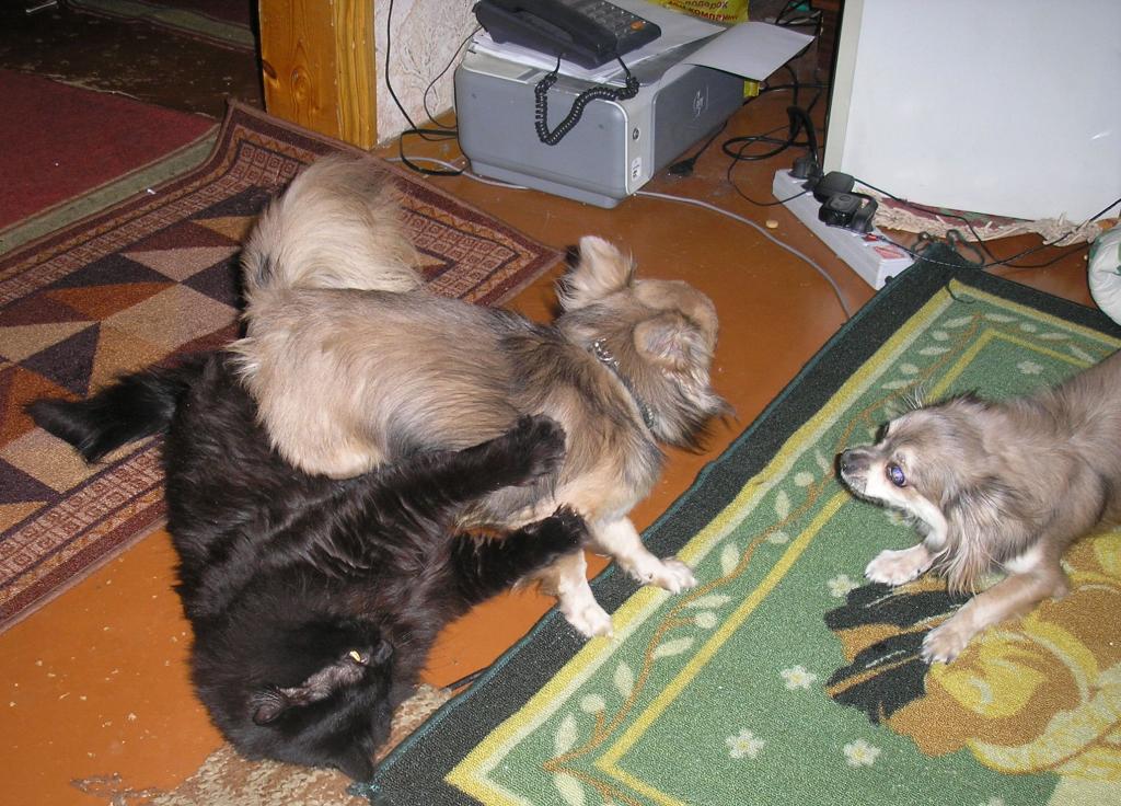 Хорошие фотки, котейка жиряшка, потискать бы, да и Тоська на третьей фотке тоже небось хочет, взгляд как будто размышляет, но знает, что мама не одобрит. Интересно буде посмотреть фотоотчет сегодняшней "вечеринки"...