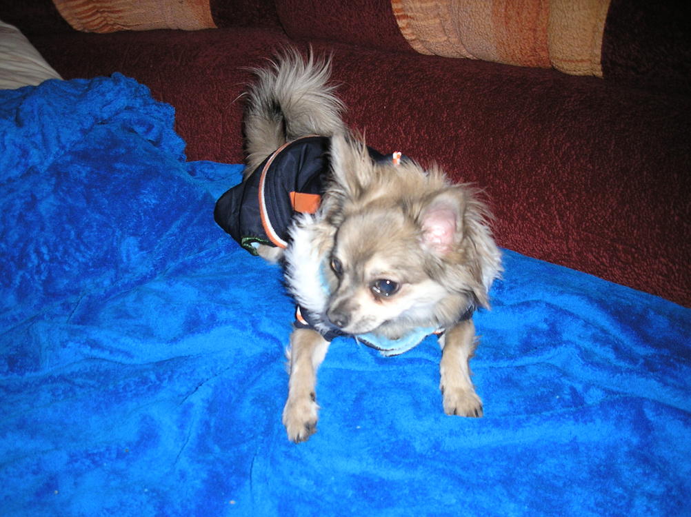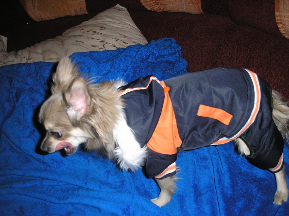 Я все думала, что у моей козявочки мерзнут лапуськи!!! Ан нет!! Сегодня мы прикупили теплый стеганый комбез с мехом внутрь и непромакшкой наружу, а посреди синтепон... и счастью ребенка нет предела!!!!:dancers: Он вытащил меня гулять целых три раза!!! Я в шоке полном! Ему удобно- тепло - и супер-модно!!! Ребятен рад больше меня, с улицы затащить домой нереально!!! у нас -5 сейчас стабильно... а еще вчера даже на балкон нос не высовывал! Фото из дома прилагаю, т.к. на улице это было сделать нереально!:tearsofjoy: