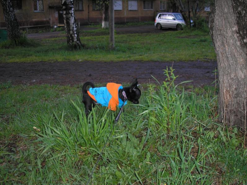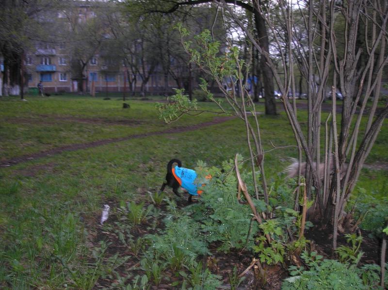 А мы сейчас ходили гулять...Лерик обновил толстовочку, не зря одели, т.к. под ливень попали!:laughing: Тоська набесился со своим друганом-метисиком...чуток фоточек!:wink: