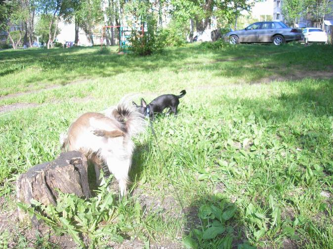 Re: Мои маленькие Тайсон и Кристиан Лерой! Лена,фотки здоровские!Тоська как всегда по двору летает,а Леройчик как тоже носиться? А мы сегодня пошли на гулянки собачьи,фотик взяли,а вот аккумулятор в него вставить забыли,вот такие мы склеротики.