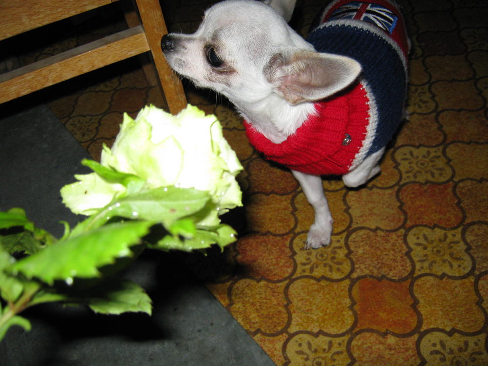 3. Зажовываем листочки с роз, пока дедушка не видит. Иначе влетит.