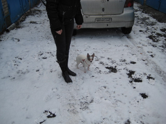 Первый снег воспринял интересно, вышли с ним из подъезда, я пошла по привычки как "умная Маша", с высоко поднятой головой, а Яринька тормоза включил, бааа говорю я, да ведь ты ж снега еще не видел и я тебе даже освоиться не дала...Ну а потом обнюхал белый пушок и как ни в чем не бывало побежал мелкой рысью, в общем произвел снег на него впечатление, самому интересно было лазать среди покрытых снежком травинок.