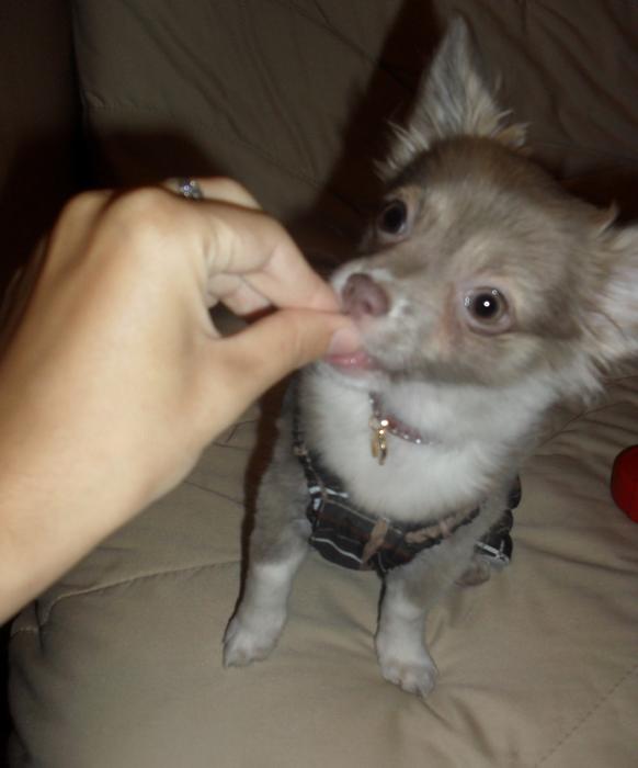 А теперь о моем вчерашнем ужасе! Во первых, вчера мы таки сделали вылазку на улицу и даже чуть-чуть походили туда-сюда =)) До этой прогулки,моя малышка сидела в моей комнате и боялась обследовать другие помещения включая коридор и кухню...После прогулки,эту пёсу как подменили,она стала носится по всей квартире и особенно отметила для себя кухню, в которой стоит миска кота, на тот момент пустая...Вечером я пошла в душ и попросила маму присмотреть за Айрис,у которой счастие по всей морде растеклось,от того что оказывается у нее вона скока пространства во владениях...Когда я вышла из душа, мама виновато сныкалась в комнату и прикинулась ветошью...Увидев Айрис, я ахнула потому как передо мной,устало виляя хвостом предстал махнатый шарик,еле передвигающий лапы..Как фурия, я вбежала к маме и потребовала ответа..Оказалось,что мама не уследила и Айрис съела всю порцию кошачьей еды "Шеба"!! И это после того,как только что поужинала своим кормом!!!Кот сидел не шевелясь на кухне и пустым взглядом смотрел в свою пустую миску...У меня началась прогрессирующая истерика..Звоню со шмыгающим носом заводчице ( питомник "Стронг Стайл") рассказываю,что и как...Она мне: "Бегите в аптеку за Энтеросгелем!", я вспоминаю,что все ближайшие аптеки уже закрыты (время 23:15). В истерике на колени к Яндыксу за помощью. Нашла дежурную,на углу района,можно сказать! бегом туда...Ох..Потом насильное впихивание пасты толстой,не послушной собаке! Потом ожидание..а через час еще одно впихивание...Полночи без сна..а на утро...ВСЕ ХОРОШО! Здоровенькая, веселая! Только простите, она блеванула некрасиво, а потом еще не красивее это сразу же и съела...тут и мне поплохело...А так все обошлось,други! Но что я перенесла...это было ужасно!