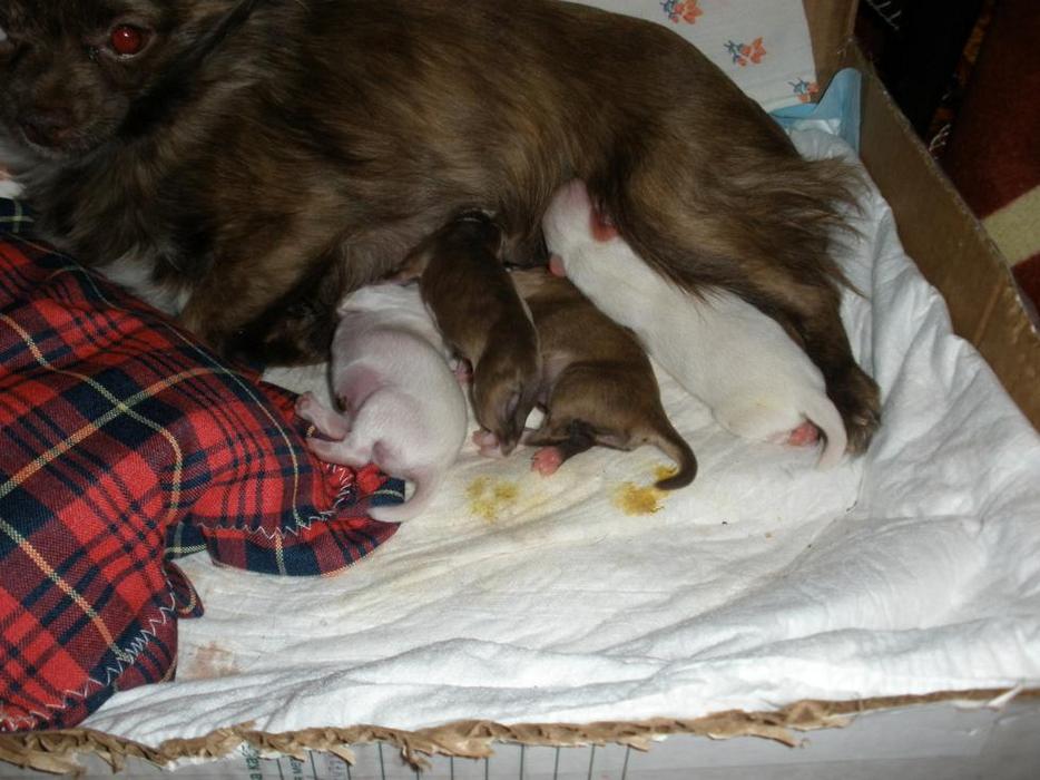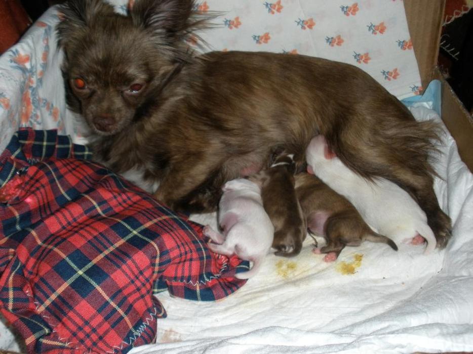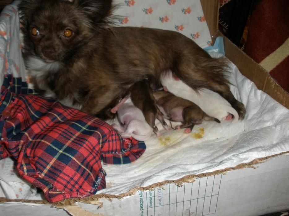 щенок шоколадный первый с лева (на фото им один день от рождения)
