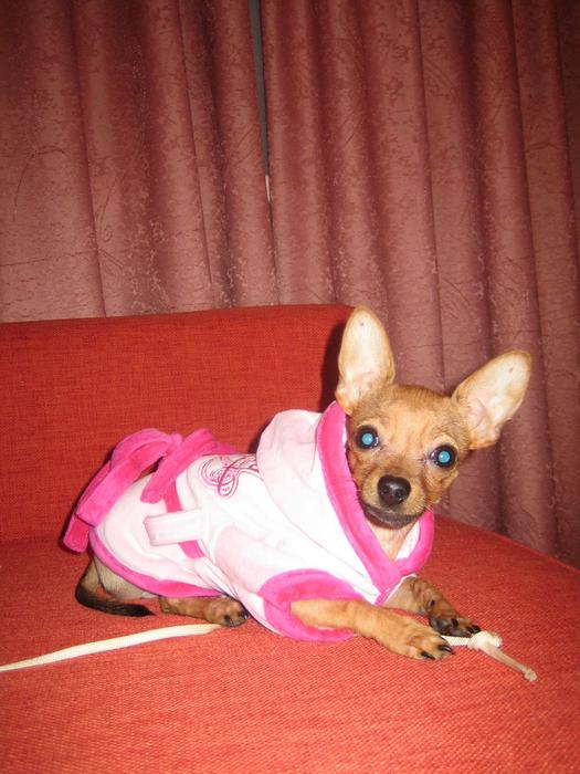 MiniMouse Опытный участник Сообщения 246 Город Иваново 10 Мар 2011 в 9:24 #77 Спасибо девчат!!! =)))) У нас еще одна....вчера мылись, а потом надели тепленький халатик Джуси))))))))) Вложения Чихуахуа (Изображение 025.jpg) 39,4 KB · Просмотры: 171 Чихуахуа (Изображение 030.jpg) 103,2 KB · Просмотры: 178 Чихуахуа (Изображение 038.jpg) 55,3 KB · Просмотры: 151