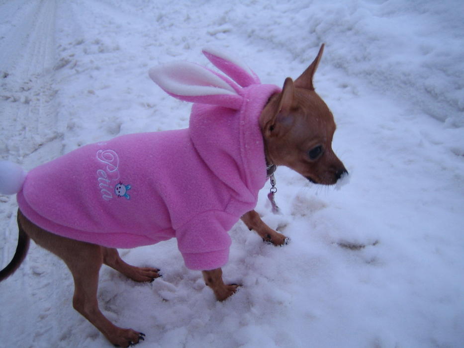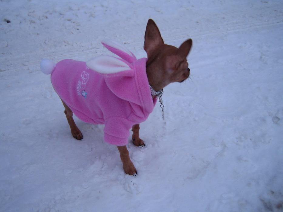 Ну в курточке сидит тихонечко и смотрит по сторонам) А на снег я ее первый раз опускала на минутку, она понюхала чуть-чуть и стала на руки проситься)))