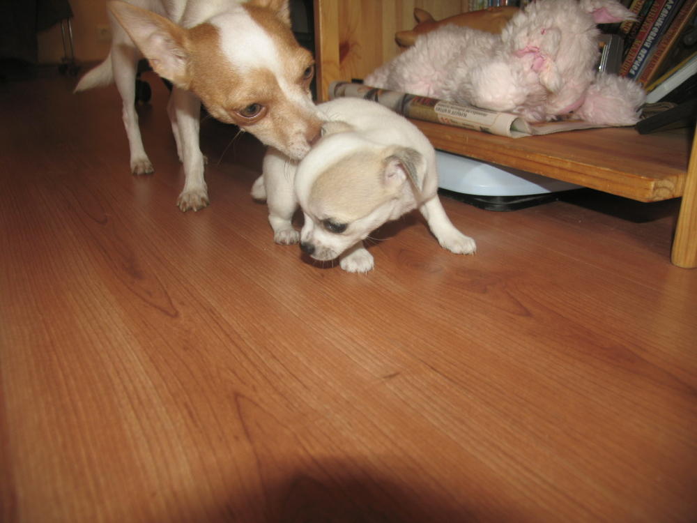 ну мамка наша всегда была лещеватого типа.сейчас все не так плохо как на фото выглядит.самая первая ее худая фотка сразу после родов уже всех детей.пока активно кормила ела щенячий корм.я кормлю ее Бошем.Сейчас уже перешла на свой,по возрасту.Еще творожок кушает она.