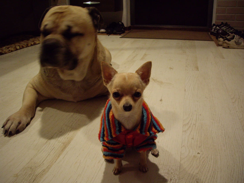 Фокс в новой куртке и с старшим братом (мы теперь без него никуда)