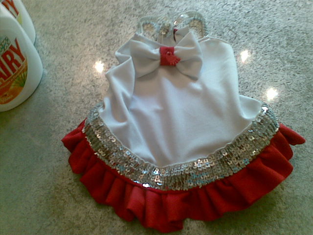 Ну вот новое платье готово.Сшито все по той же выкройке.Шила из хлопкого вельвета.Я вообще предпочитаю в одежде для собак использовать натуральные ткани-особенно летом.
