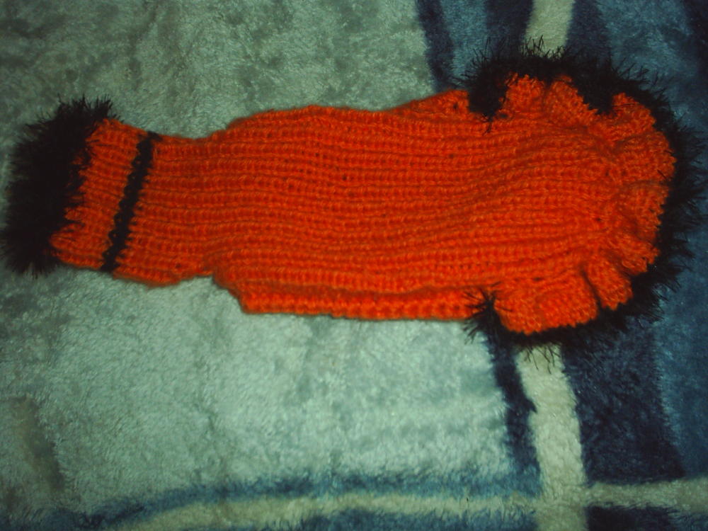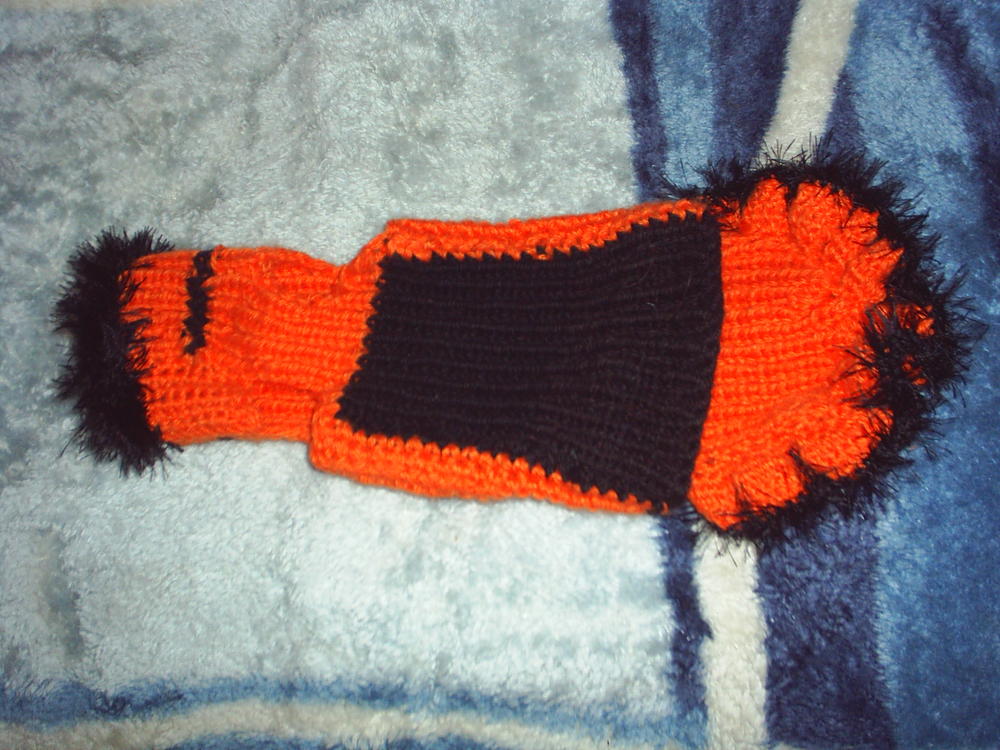 Теперь нужно вязать сестриче шубку из таких же ниток, не придумаю, такой же окраски, или полосаую, или сделать наоборот - где оранжевое - там черное...Как вам кажеться, как красивее будет?:wink: