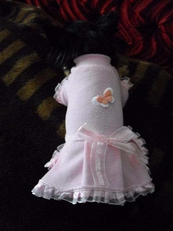 Да , обхват грудной клетки у моей собачки 31 см , а длинна от холки до хвоста 30см. Выложила фото , как на ней шуба сидит . так , что если захотите длиньше рукав или саму шубу , то сразу прибавьте пару см.