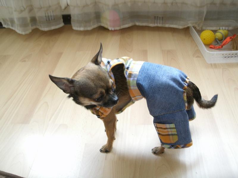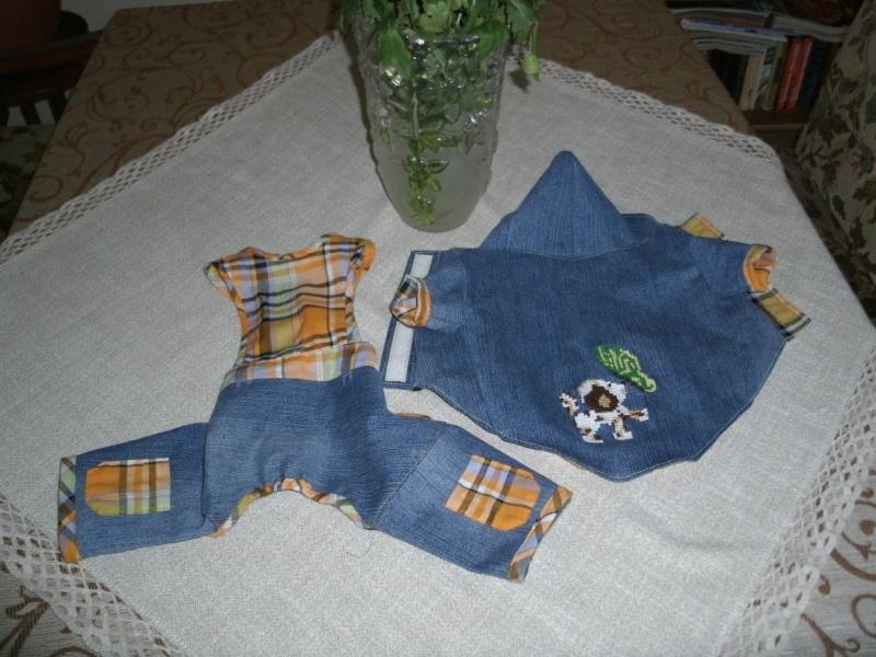 Светлана,очень понравилась вышивка на курточке!И костюмчик классный.только вот штанинки,мне кажется надо сделать чуть по-уже и покороче или на манжетку их посадить,а то песику неудобно ходить будет.:wink: