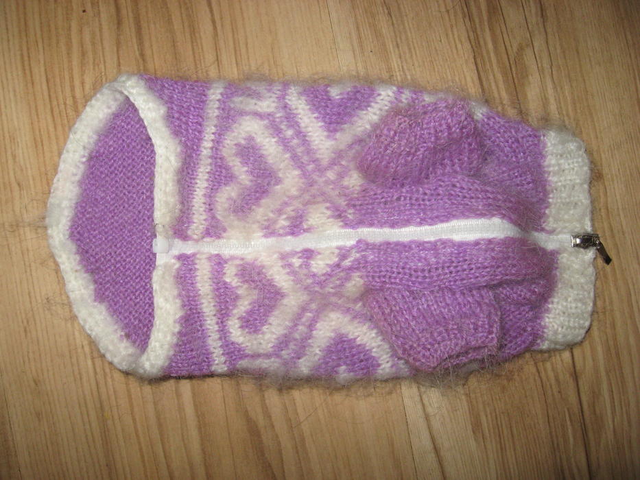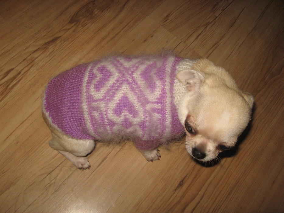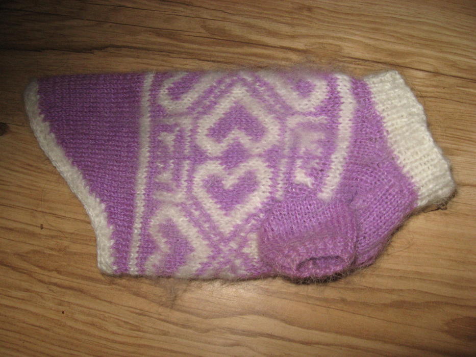 Это связала для Харлей, вязалось долго, т.к. сложноватый для меня рисунок оказался. Но в итоге свитер получился очень тёплый и по-моему симпатичный.