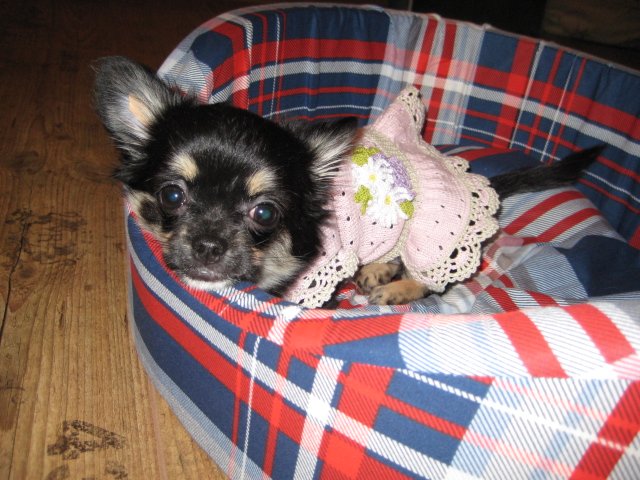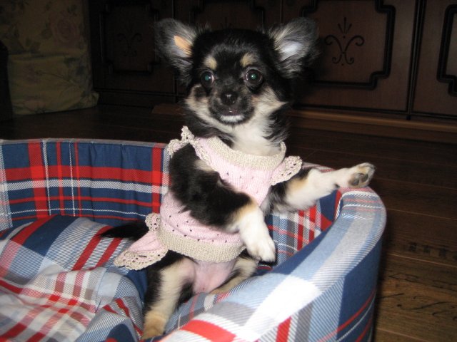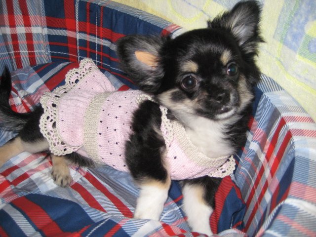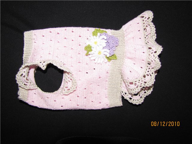На Патринкину мини-днюшечку (3 месяца нам недавно исполнилось) в подарок дитю связалось платице. :smile: Мой первый опыт вязания на собаньку, т.ч. не судите строго. :smile: