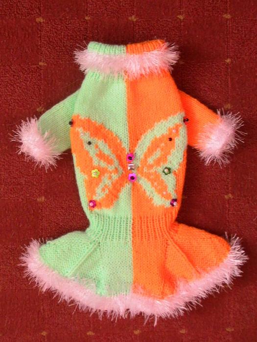 Татьян, я спросить хотела.... а ты вяжешь без застежек, я смотрю. А на собачку нормально одевается, без особых трудов?