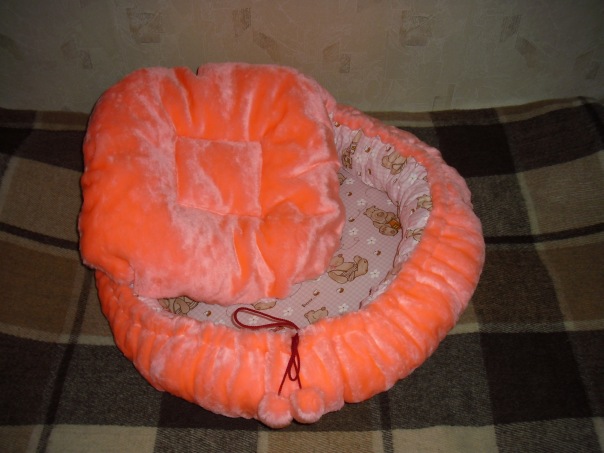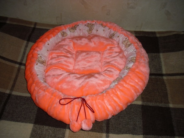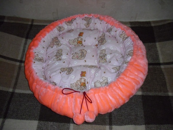 Смастерила еще один лежачок из меха и бязи.Лежак двухсторонний с дополнительной подушкой.