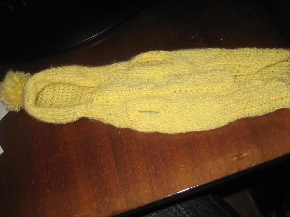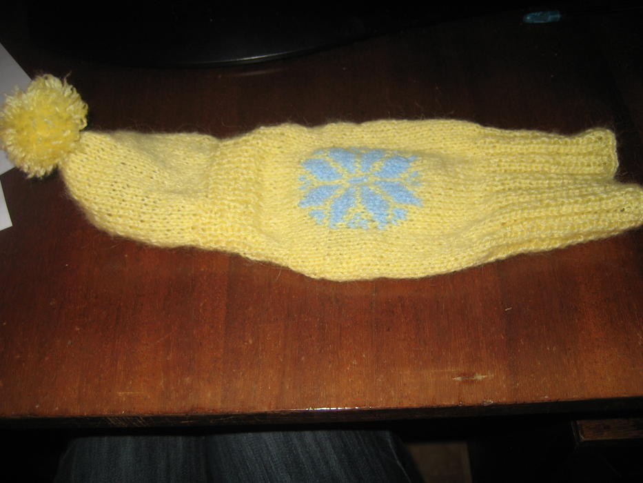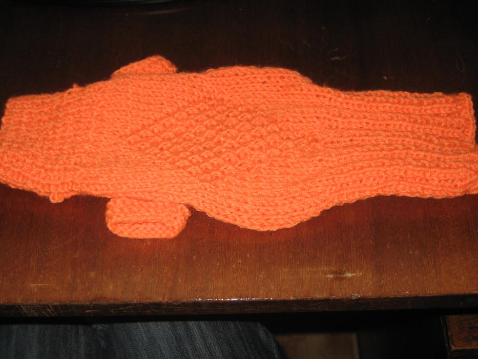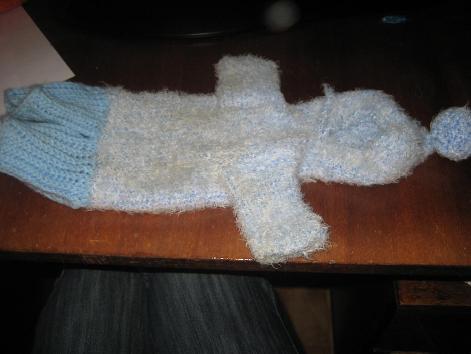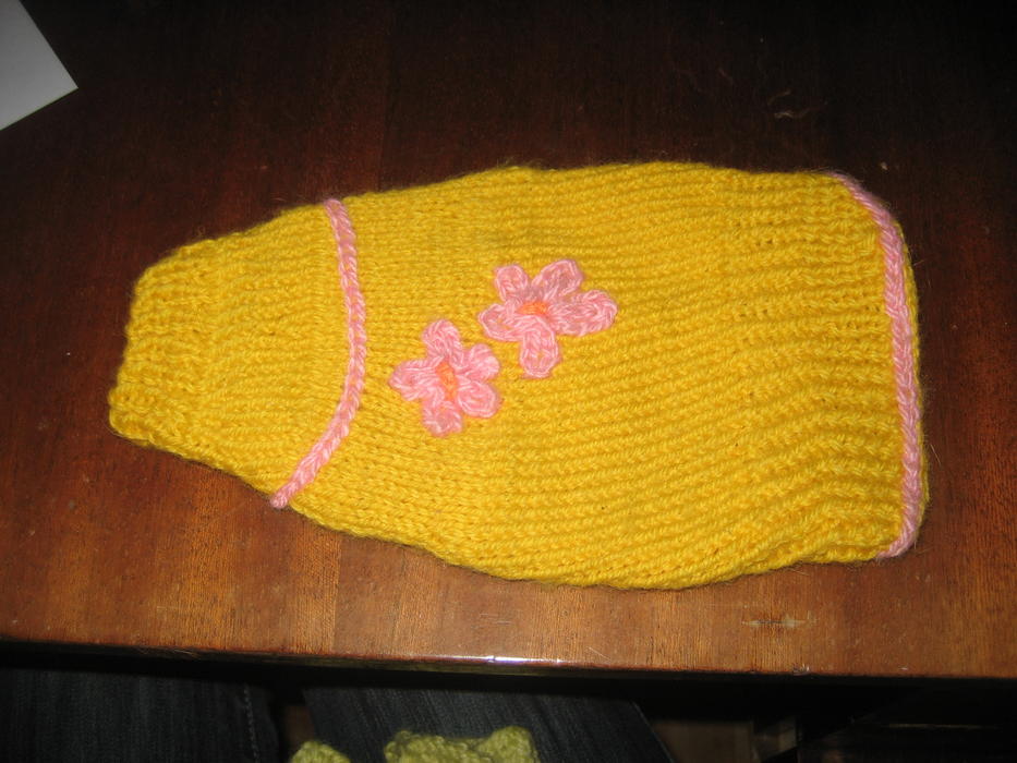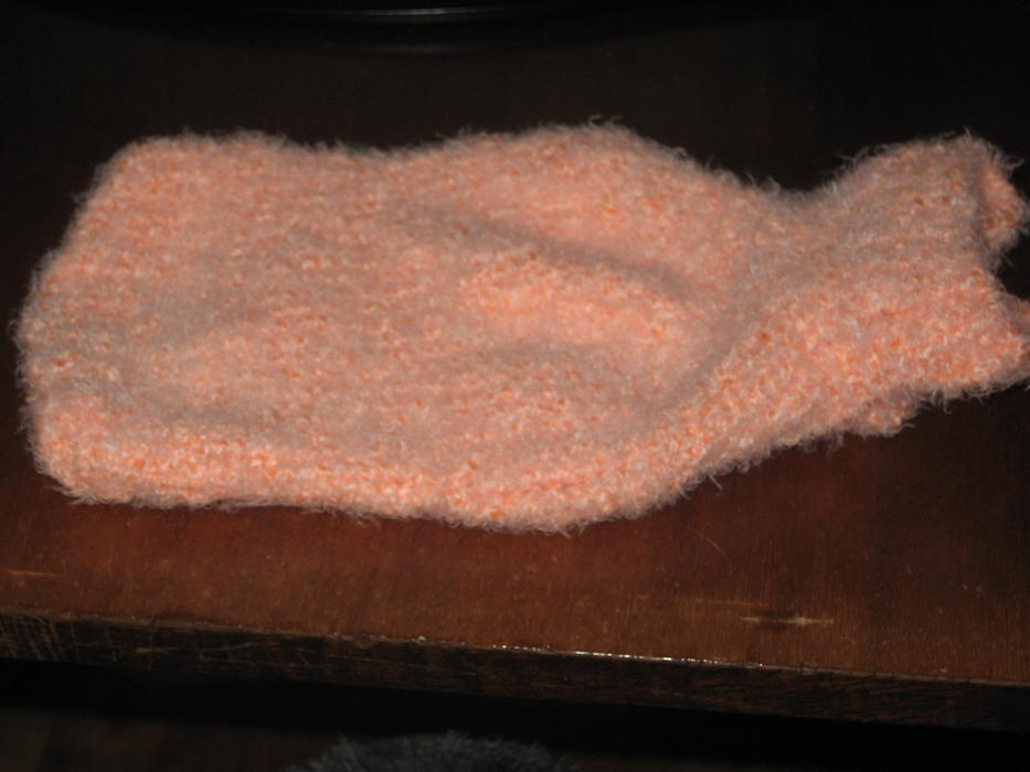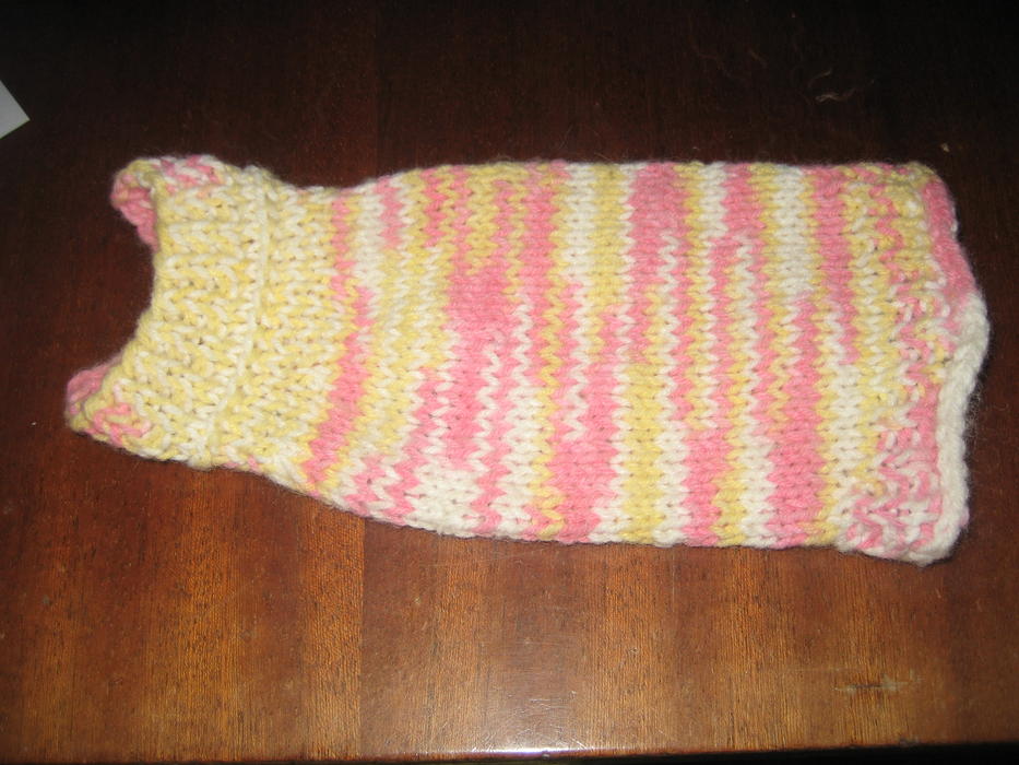Тань, первый раз вязала без застежки! Ничего - влезает! :wink: Элька, конечно, не очень хорошо относиться к такому одеванию! Но, думаю, привыкнет!