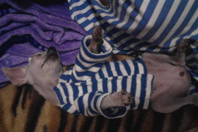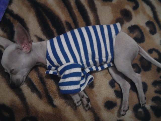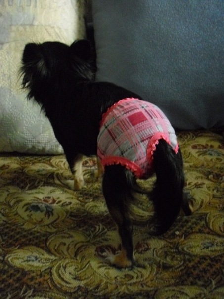 А я тут в срочном порядке труселей нашила,Лелька теперь спит на подушке ,у меня над головой,а течка в этот раз сильная-пришлось трусики шить в срочном порядке.