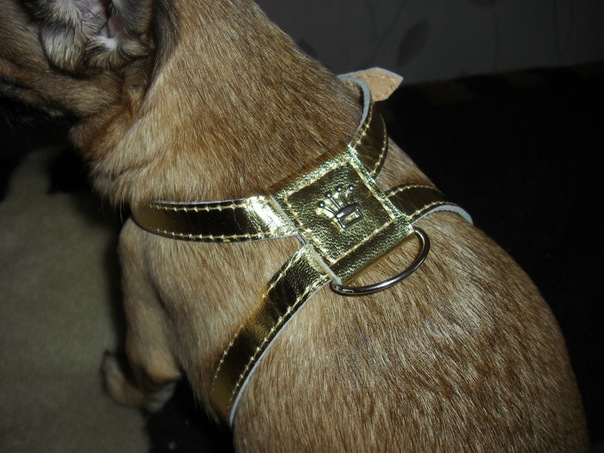 Вот такие гламуристые шлейки из серебрянной кожи нам папка сшил.
