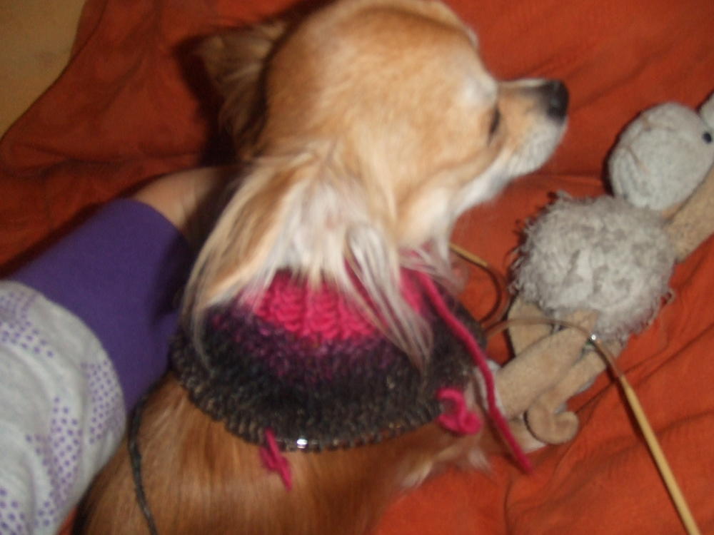 Смотрю на ваше фото и думаю,что может быть надо было приложить как следует, посмотрите, может быть изначально много взяли петель на грудку? вы сами по месту как говорят) примерьте, потому что у каждой собачки по-разному,потом вы приспособитесь к вашей к ее размеру и расположению лапок
