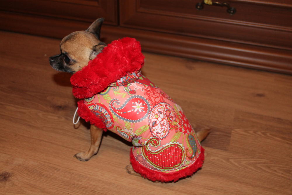 просидела пол ночи, не распустила ни одной петельки, вязала даже незная размеров собаки, доча назвала МАКСИКОМ, привезли наше приобретение два часа назад
