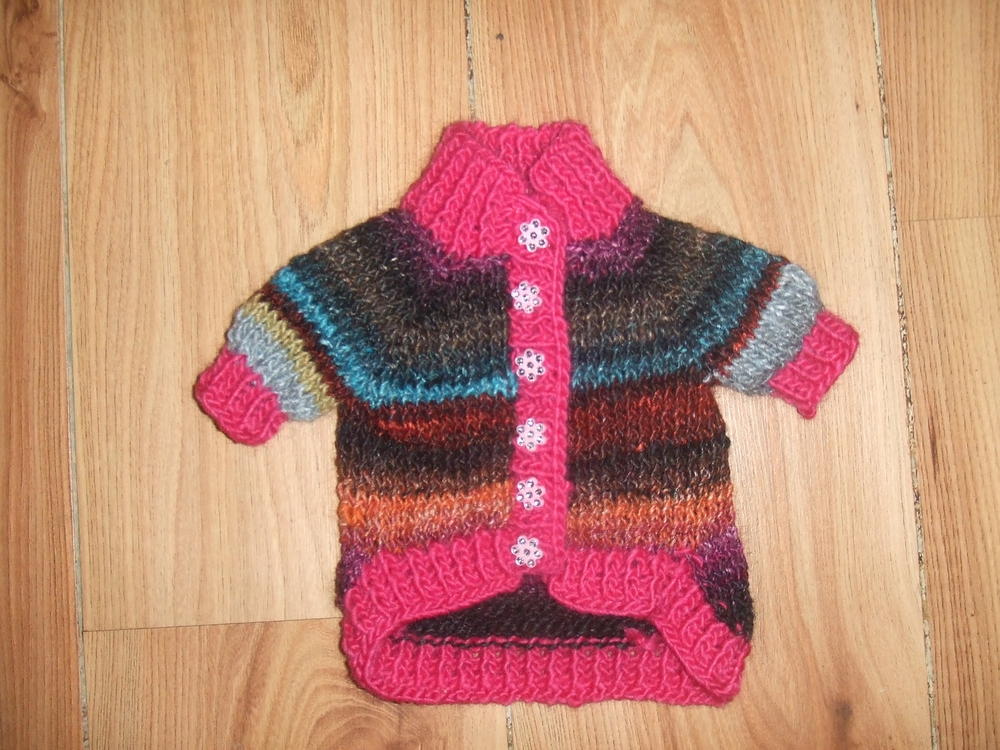 Очень красивая кофточка получилась!) И собачке она идет,зря вы говорите,что комом)))) правда! Сюда еще "просится юбочка или штанишки...Будет вообще комплект-отпад)