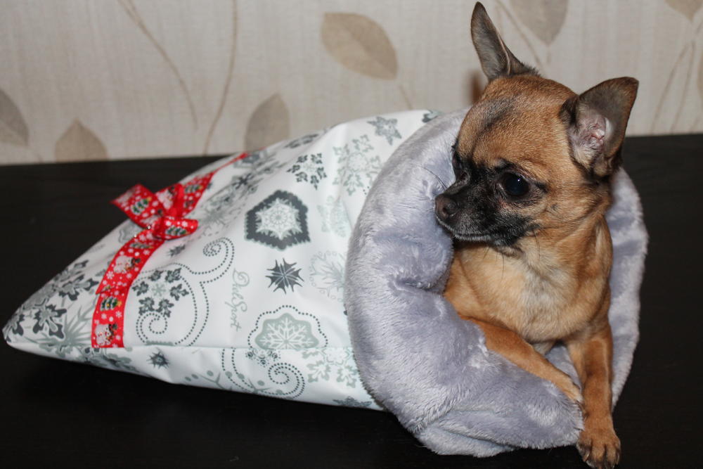 А у меня сшился вот такой мешочек для собачек.Сверху мембранная плащевка,внутри мех с синтепоном.Очень удобно на улице в морозы-можно на ручках погулять и дома ,когда холода.Гунька оценила.