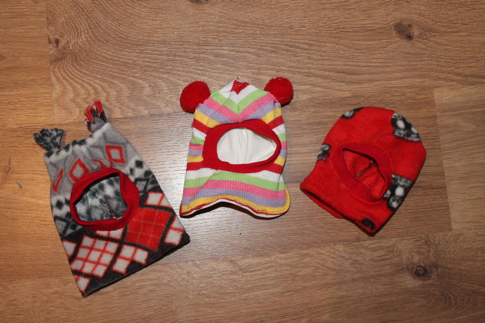 Нашила кучу шапочек-обычных и шлемиков.Шапочки из флиса и трикотажа ,однослойные и на подкладке)