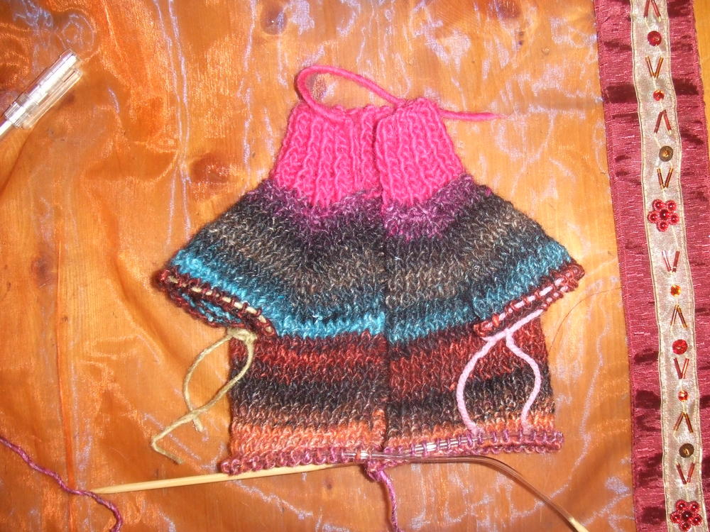 хихи,подмышки- там,где у тебя булавочки болтаются:smile:)) Вот оттуда и надо было вязать все вместе а не делить:wink: