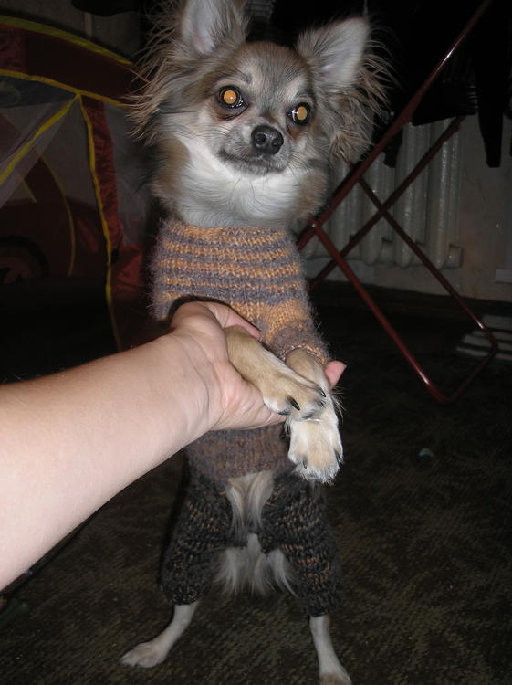 Елена&Тайсон написал(а):А мы за выходные связали теплый комбез из ангорки (верх) и ангорка-шерсть (низ)... с закрытым пузиком, осталось пришить пуговки или крючочки и можно будет фотать на моделе...