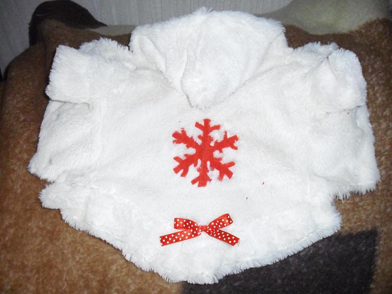 Вчера решила немного усовершенствовать шубку и пришила снежинку из флиса.Очень удобно-она мягкая и если шубку выворачивать на другую сторону она совершенно не мешает собаке.