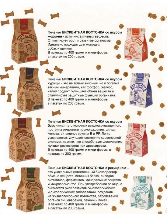 Я недавно купила своей печенье для собак Bauer Biscuits "Бисквитная косточка" мини-формы со вкусом баранины, ест она их хорошо, только вот эти мини формы всё равно моей оказались крупные, пришлось каждую печенюшку дробить на 4 части. Всё вроде бы ничего, но собака от них с ума, прямо скажем, не сходит, ещё раз покупать не буду. Единственный плюс состоит в том, что их хватит надолго. На фотографии упаковка вторая сверху в правом ряду:wink: