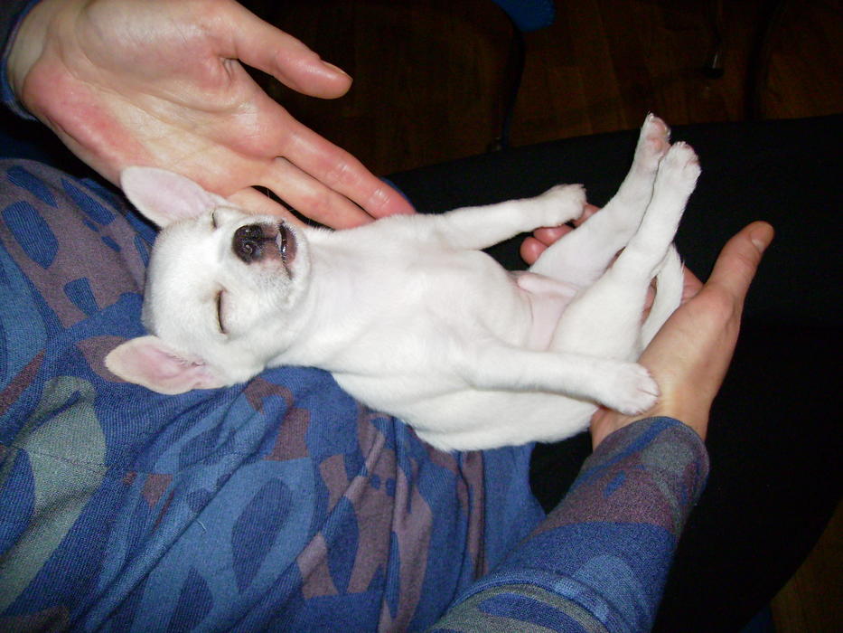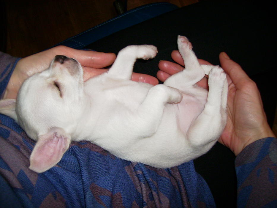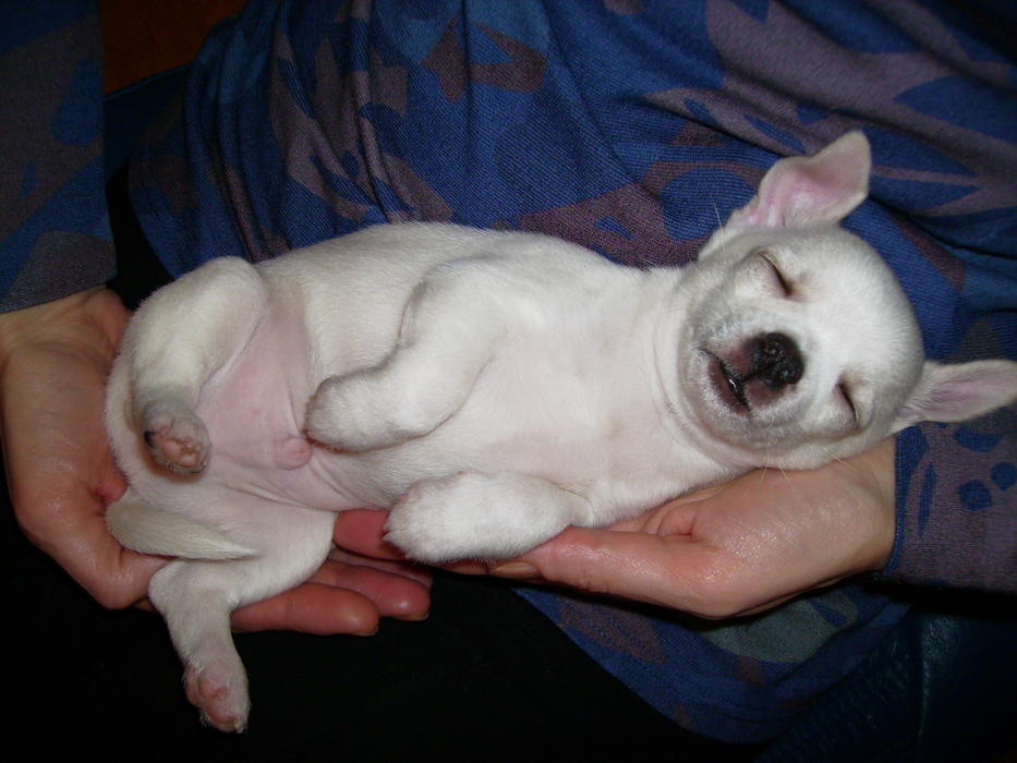 Наши знакомые познакомили своих питомцев, и вот их Снежный результат. В помёте 2 щенка, девочка и наш мальчик (не первый). Сейчас весит 600гр
