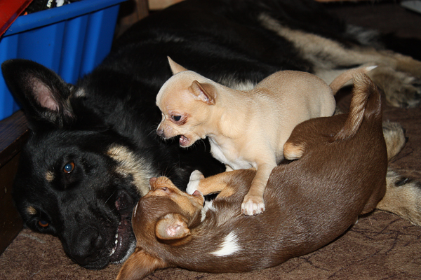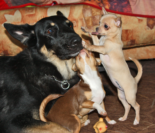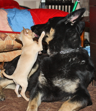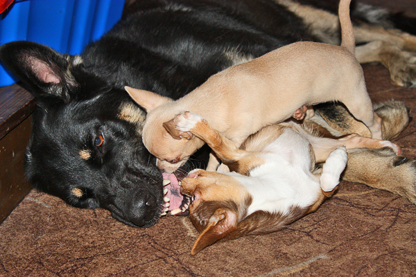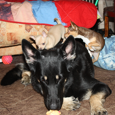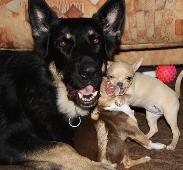 Фотки супер)))) представляю бедных овчарок, которые с утра до ночи облеплены двумя маленькими шилопопиками)))))