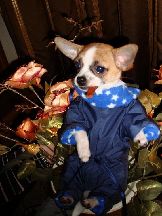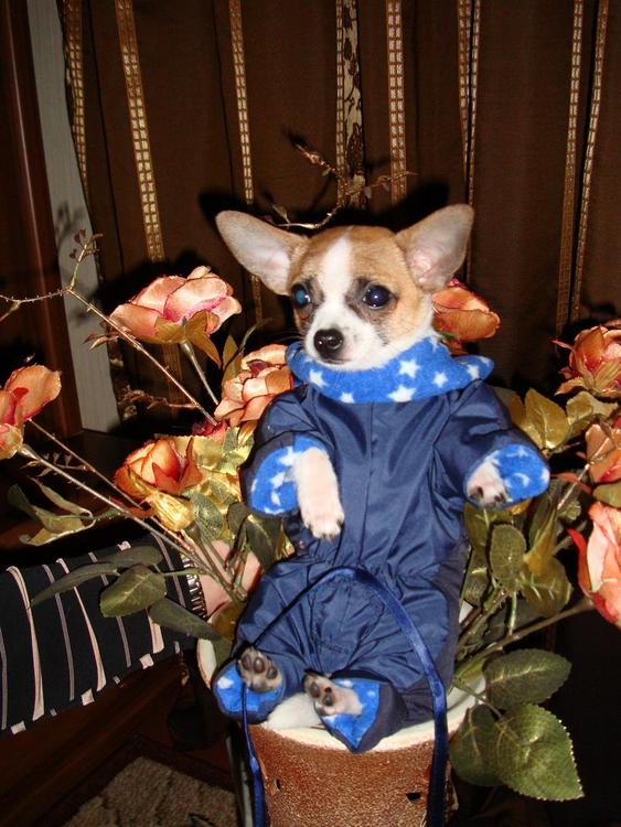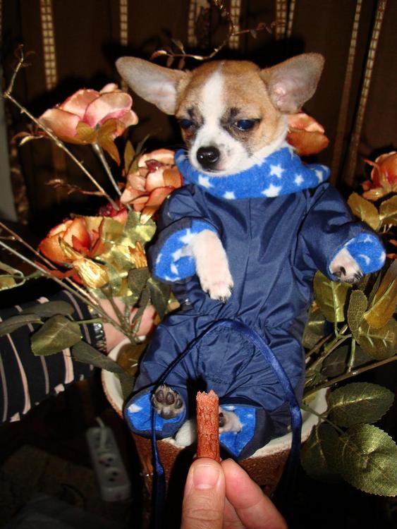 приобрела к зиме тепленький комбинезончик, одела он в нем как кукленок, решила сразу сфоткать такое чудо))) пришлось дать собачью колбаску, чтоб не обижался))):icon_smile: