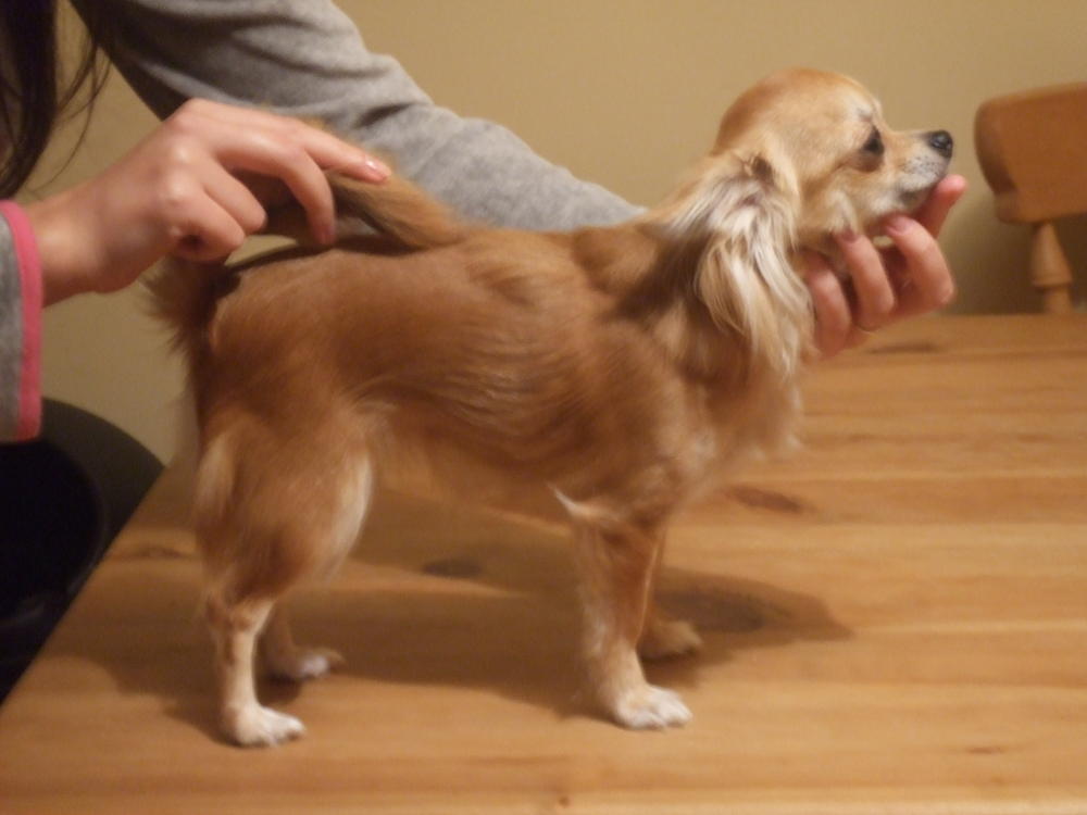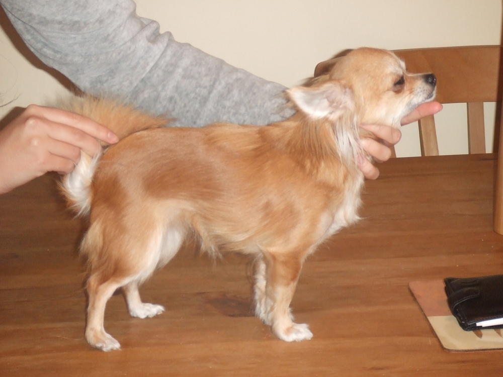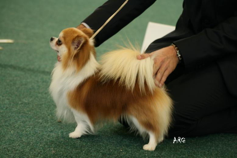 На первой фотке в стойке она хвост поджала. А на второй уже получше,но зато ноги хуже стоят,мне кажется