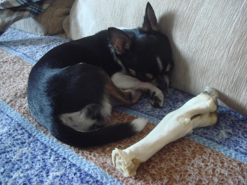 * косточки 8-в-1 Delights XS с курицей - мне нравятся за счет маленького размера и наличием лент сушеного куриного мяса, спрятанного в сушеную кожу. Джем периодически их муслявит.
