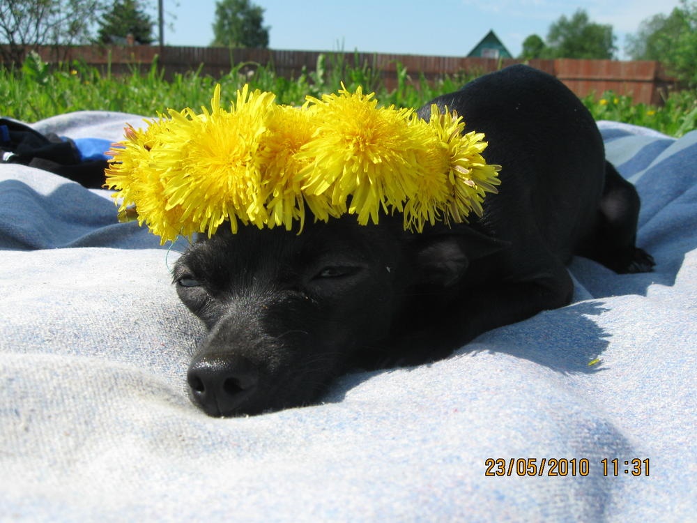 Еще у нас была история. У знакомой чишка ощенилась и мы пошли в готи (конечно мы дождвлись, когда малышам сделают прививки). Так моя красавишна, залезла к ним в домик. Собрала их всех у себя и никого не подпускала (даже мамашку). Сейчас ищем второго ребенка. Надеемся, что она примет ее как родную.