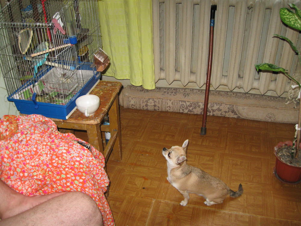 1. Милька каждое утро гипнотизировала попугая у моих родителей:wink: