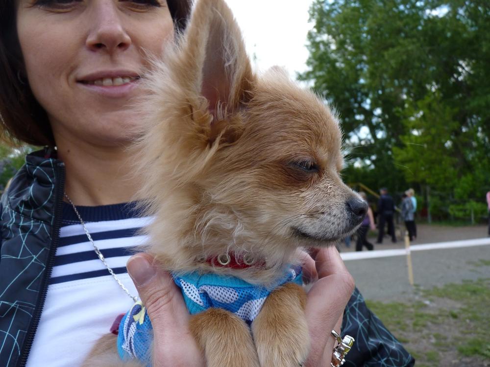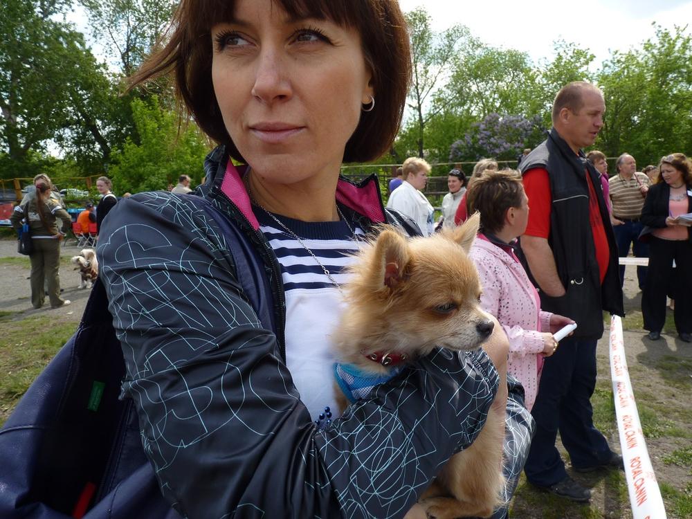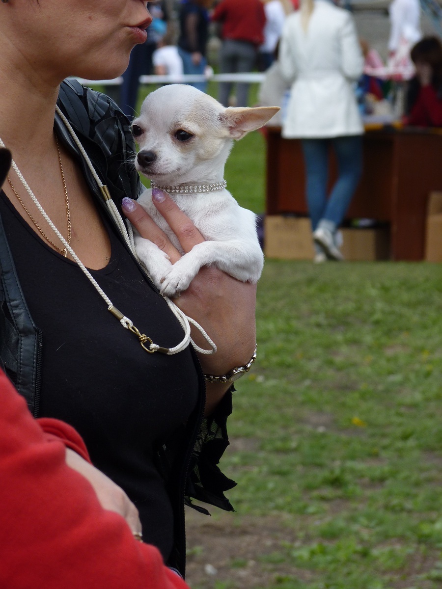 а Чувака сидел на руках и наблюдал за выставкой. сначала, правда, он так сильно разволновался от такого скопления самых разных собачек, что срыгнул....