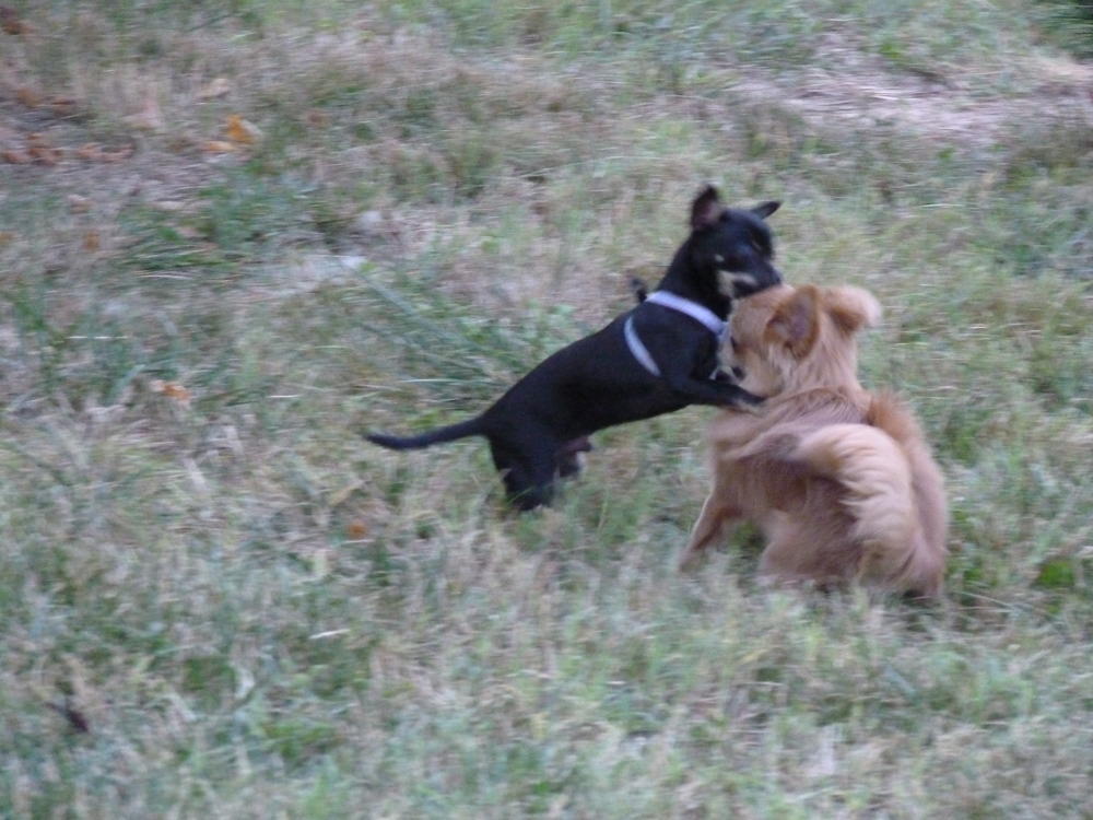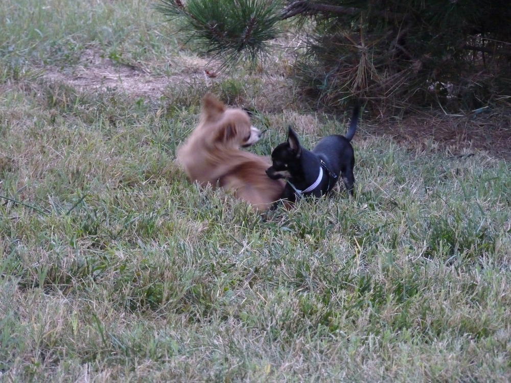 в поездке познакомились с чихом Гуччи - около 5 мес. Такой чертяка - шило!!! Пару раз малыши гуляли вместе - такие номера выдавали!!! носились в догонялки, пока не упали в траву... небольшая передышка - и по новой )