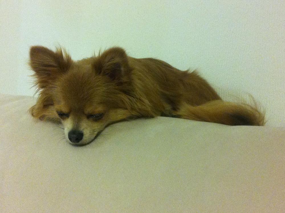 Чувака продолжает выть после нашего ухода (скулит и плачет), минут 15 горюет. Потом ложится спать.... Когда же он повзрослеет и не будет так сильно переживать???